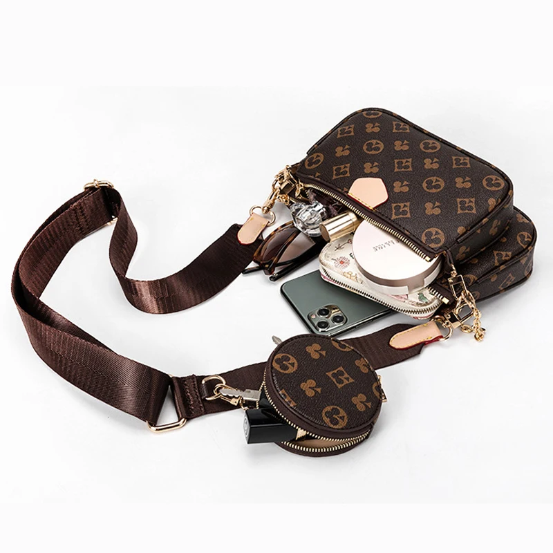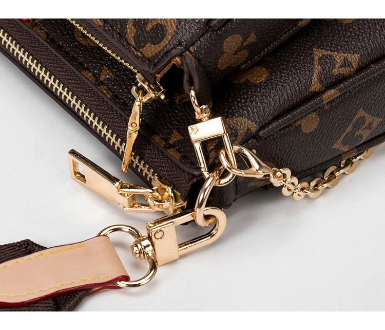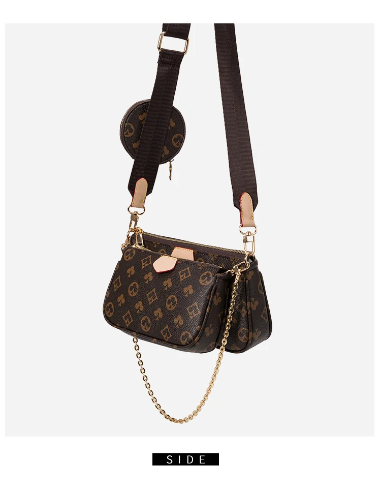 Crafted in Monogram canvas, this is a hybrid crossbody bag with multiple pockets and compartments. It includes a Pochette Accessoires and its miniature version adorned with a mini Monogram motif on the sides, as well as a Rond coin purse. The model also features a removable gold chain and an adjustable bag strap embellished with a jacquard Louis Vuitton signature, to offer different carrying options.