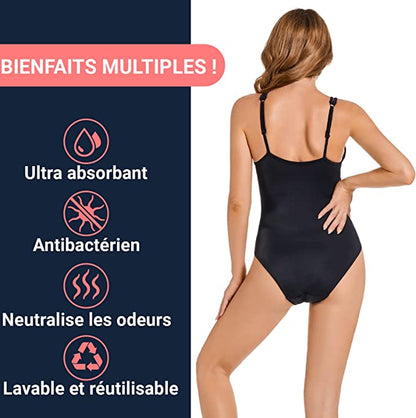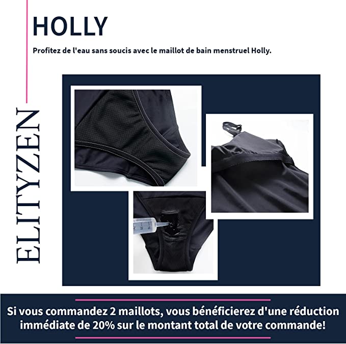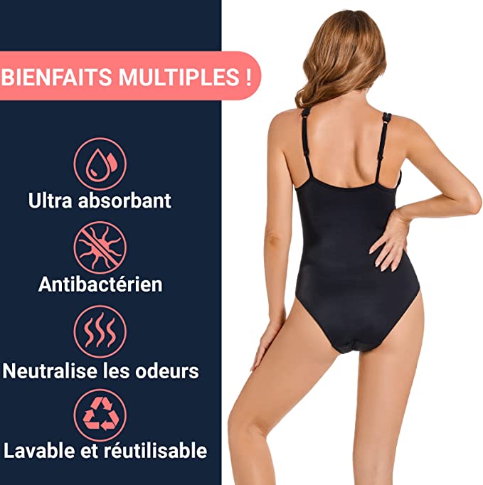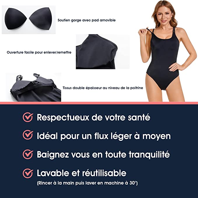 Discreet, comfortable and very practical, this menstrual swimsuit has an integrated absorbent core to retain blood. Specially designed for swimming and able to absorb the equivalent of 2 to 3 tampons, this menstrual swimsuit ensures peace of mind in the water but especially out of the water.