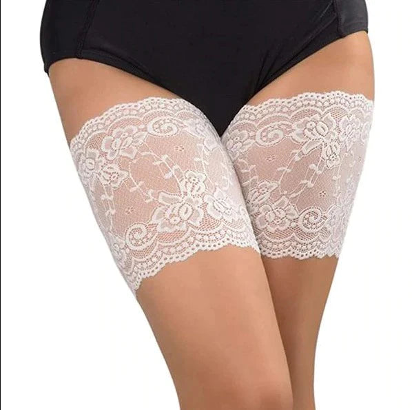 Ces bandes anti-frottement sont fines et ornées de dentelle afin d'apporter une touche sexy et glamour à vos tenues. Vous pourrez les porter sous une jupe, une robe ou encore un short sans jamais qu'elles ne se remarquent sous vos vêtements. Elles épouseront et engloberont vos cuisses avec douceur et délicatesse. Profitez de notre 3 bandes disponibles en 3 couleurs différentes : noir, blanc et nude !