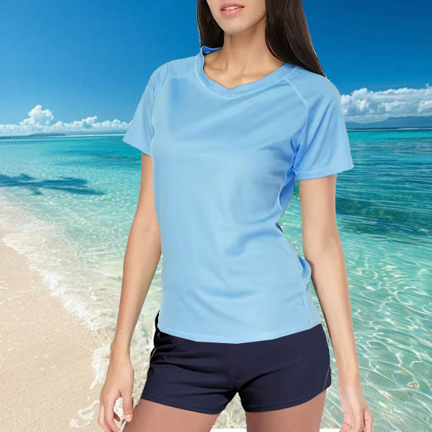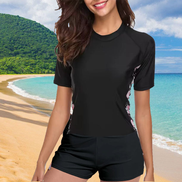 Cet ensemble comprend un haut de bain à manches courtes et longues, ainsi qu’un short de bain à l’apparence classique, mais qui cache bien son secret : il intègre une protection menstruelle multicouche ultra-fine, offrant jusqu’à 8 heures de protection, quel que soit votre flux. Il ne gonfle pas dans l’eau et assure un confort optimal avec un maintien parfait.