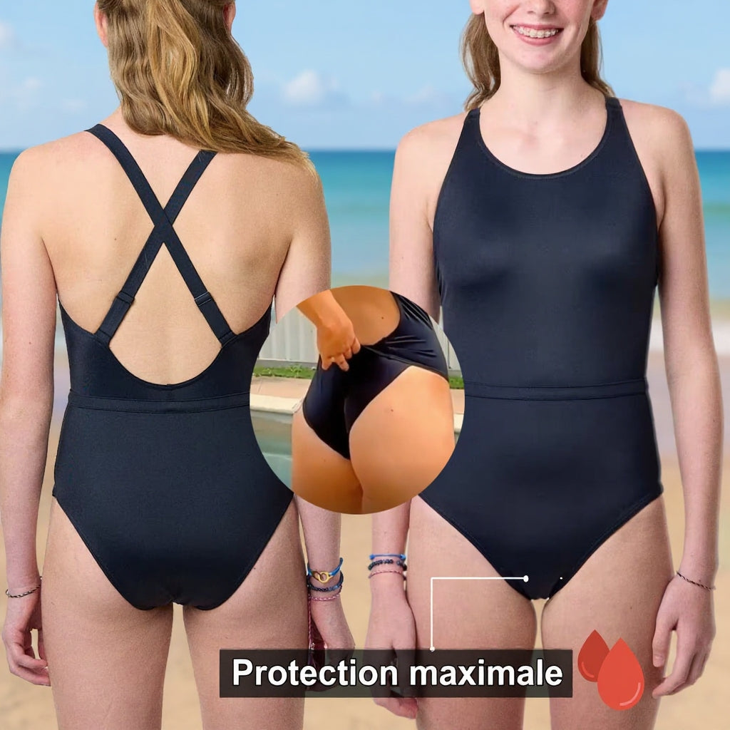 Upptäck det fÜrsta mensbadbyxpaketet: ett absorberande och vattentätt trosskydd designat fÜr att bäras under vilken baddräkt som helst, och Üverraskningen: en üteranvändbar binda fÜr kraftigt flÜde är GRATIS! Du kan bära den med vanliga trosor. Ett komplett paket fÜr att bada fritt, även under mensen.